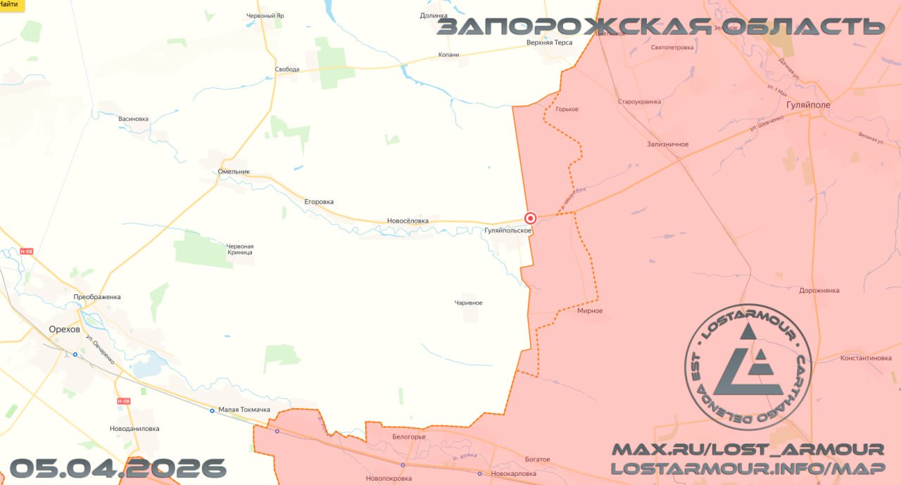 «На Днепропетровском направлении инициатива остаётся за российскими подразделениями.Малые штурмовые группы РФ продолжают продвигаться в направлении Гуляйпольского и Волшебного.По сообщениям бойцов с поля, ВС РФ уже закрепились в нескольких лесополосах...