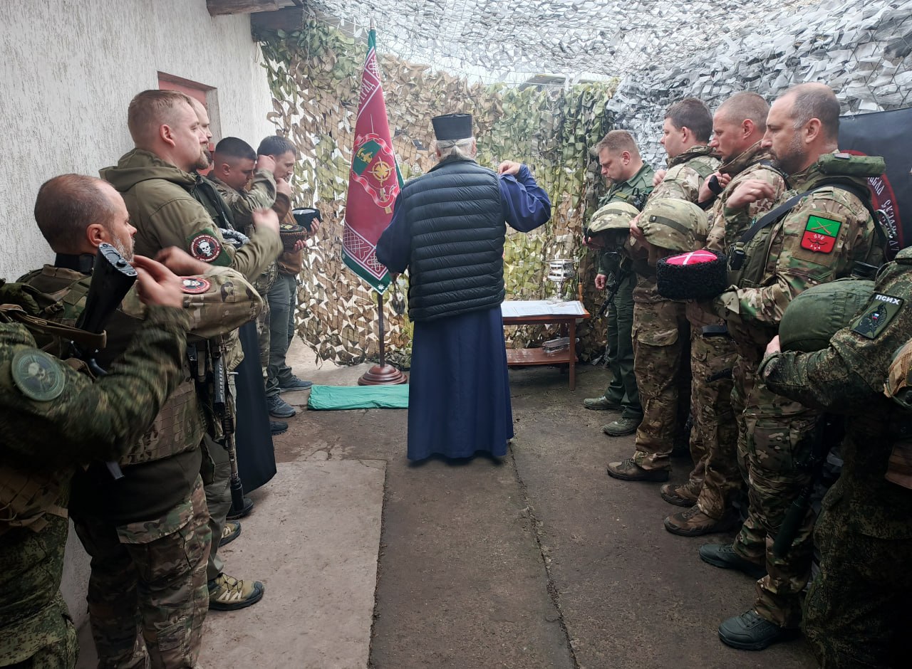 Церемонию провел духовник отряда, протоиерей Анатолий Зыгарь. В ней также принял участие священноинок Венедикт (Кочергин), председатель отдела по взаимодействию с казачеством Бердянской епархии.