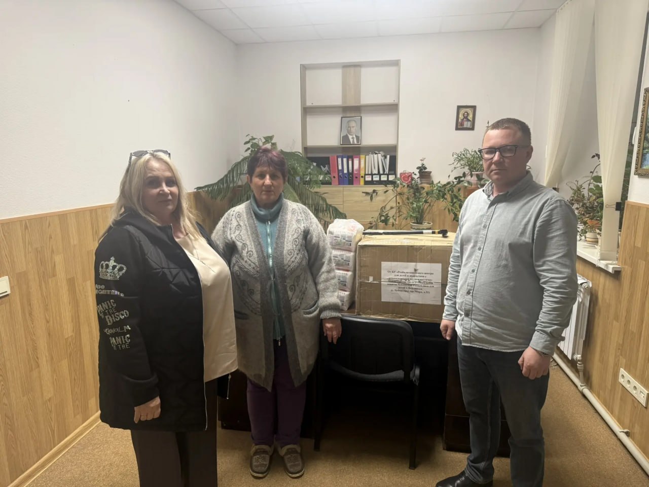 В гуманитарном грузе для больницы был доставлен необходимый, для ухода за больными, инвентарь, включающий в себя памперсы и влажные полотенца.