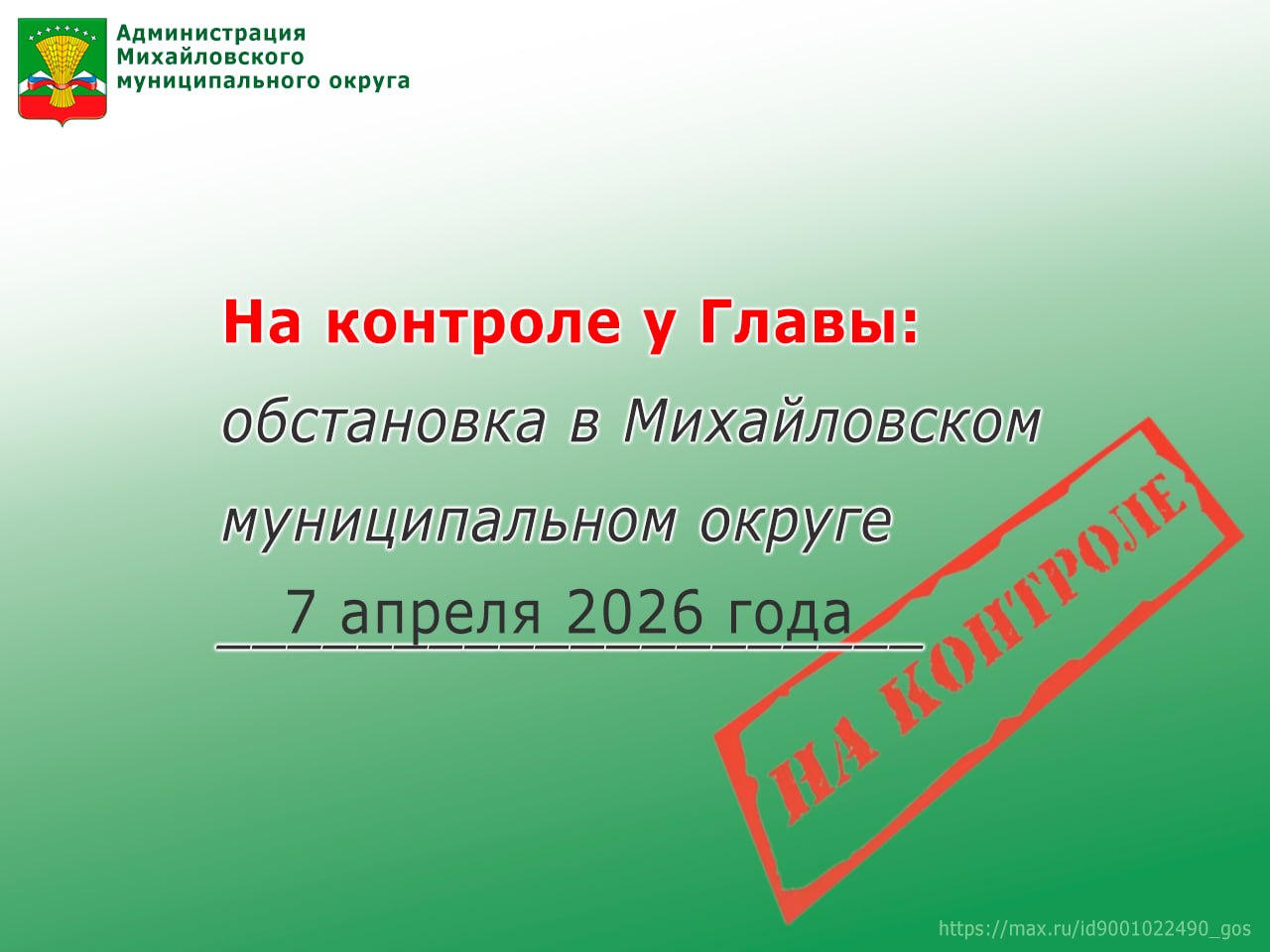 На контроле у Главы: обстановка в Михайловском муниципальном округе 7 апреля 2026 года