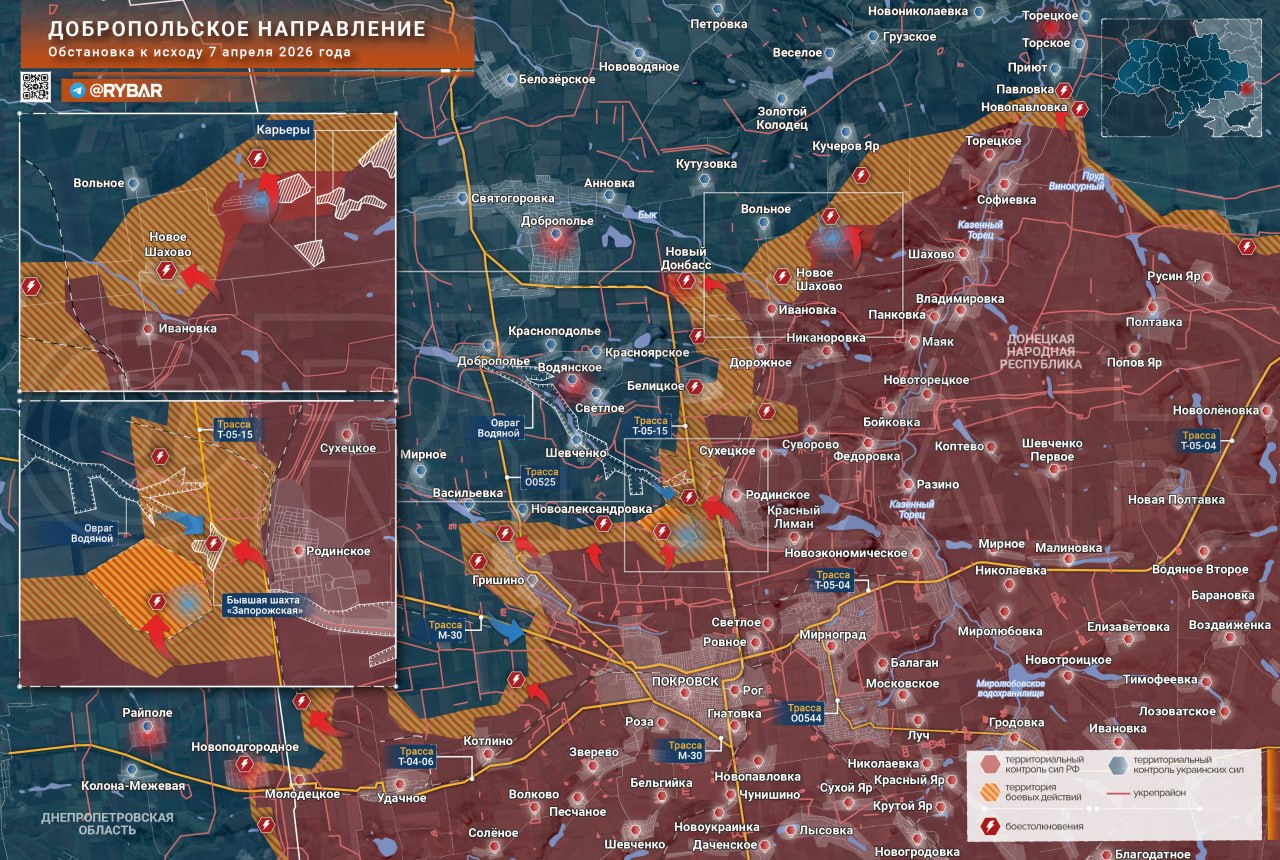 На Добропольском направлении бойцы ГВ «Центр» установили контроль над карьерами в окрестностях Нового Шахово и отбросили противника с позиций к северо-востоку от села. В районе Родинского штурмовики предпринимают попытки закрепиться на территории бывшей шахты «Запорожская» и расположенного рядом оврага Водяной.