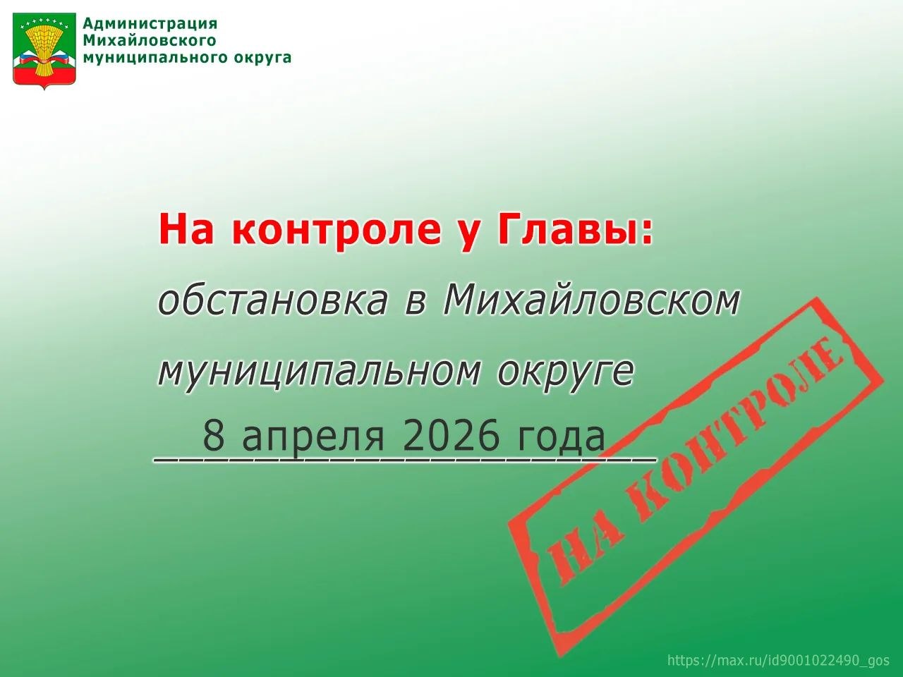 На контроле у Главы: обстановка в Михайловском муниципальном округе 8 апреля 2026 года