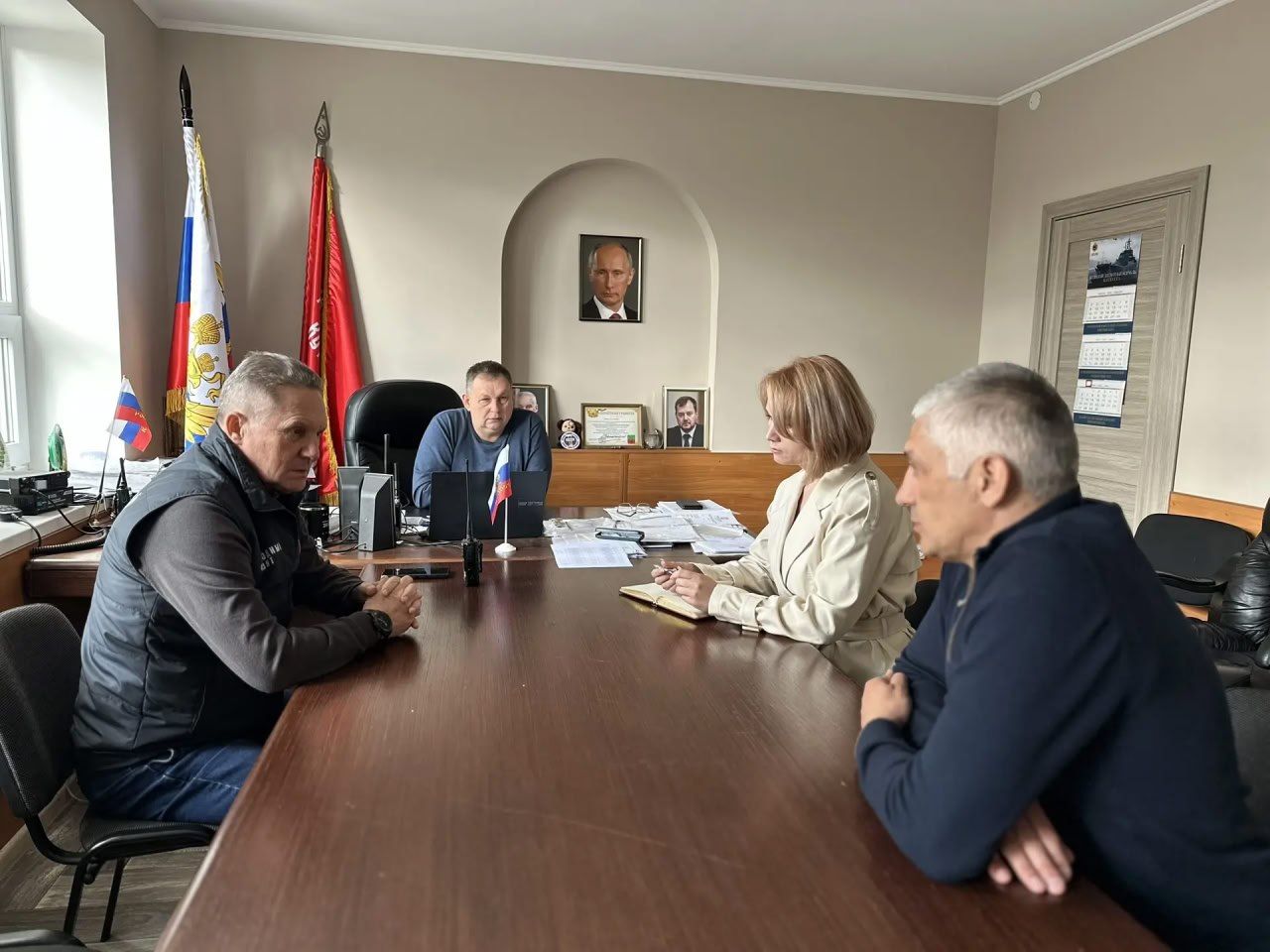 Первый заместитель Председателя Правительства Пензенской области и руководитель шефской команды в Запорожской области Виктор Кувайцев провел рабочую встречу с главой Пологовского муниципального округа Алексеем Салминым и руководителем Токмакского филиала регионального фонда капитального ремонта многоквартирных домов Запорожской области Романом Расуловым.