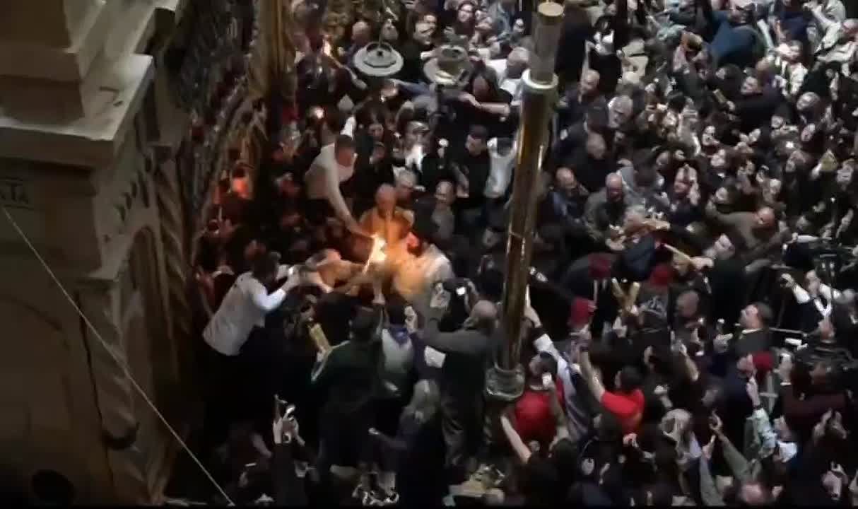 В храме Гроба Господня в Иерусалиме сегодня сошел Благодатный огонь, символизирующий воскресение Христово. Патриарх Иерусалимский Феофил III вошел в Кувуклию (часовню, в которой расположен Гроб Господень) в 14:08 по московскому времени, и уже через пять минут огонь проявился.