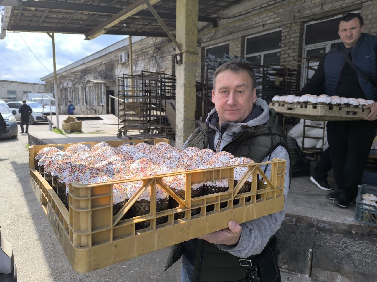 Акимовский предприниматель Евгений Беляев безвозмездно передал более двухсот пасхальных куличей прихожанам местных храмов. Столько же ароматной выпечки его предприятие направило нашим защитникам – военнослужащим и сотрудникам правоохранительных органов.