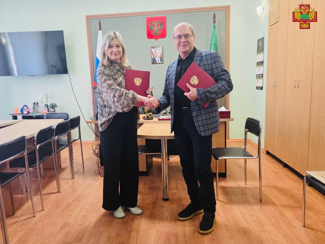 Директор НИИ Александр Зудин и директор колледжа Оксана Грищенко скрепили подписями соглашение, которое обещает обогатить учебный процесс лекциями и видеоэкскурсиями от Российского музея медицины, подразделения Института.