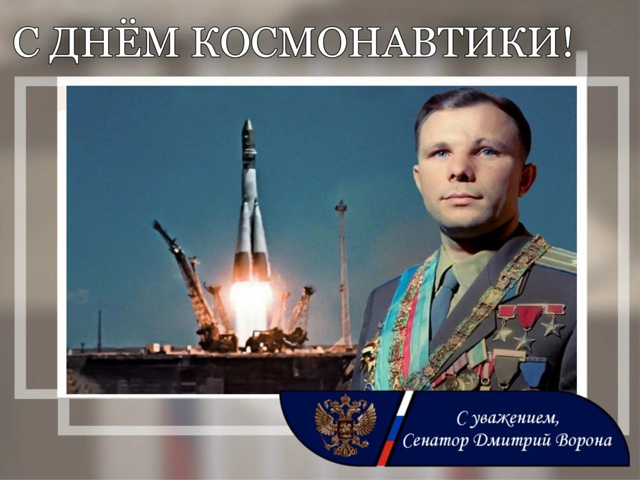С праздником, с Днем космонавтики! Пусть над нашей Россией всегда будет чистое и мирное небо, в котором для каждого из нас светят ясные и добрые звезды надежды.