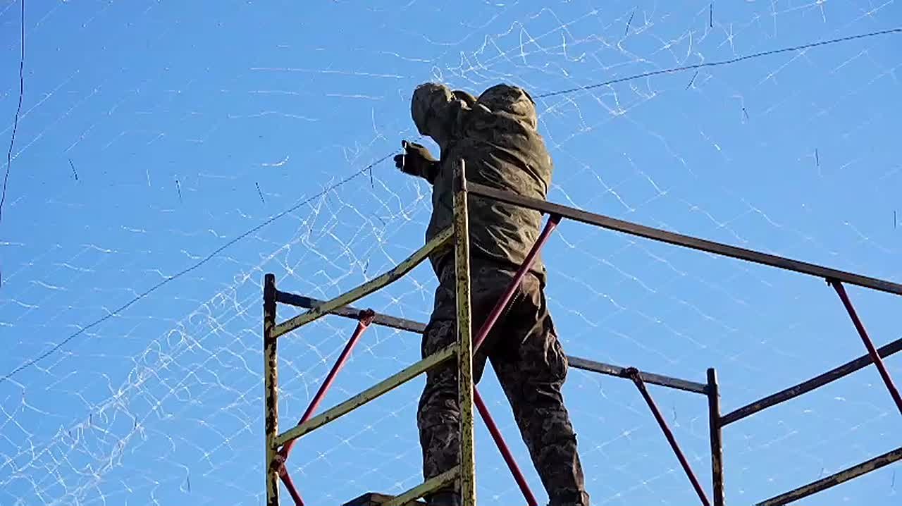 Видео демонстрирует, как противник расширяет свои антидроновые оборонительные системы путем установки защитных сетей над стратегическими дорогами в контролируемой ей части ДНР