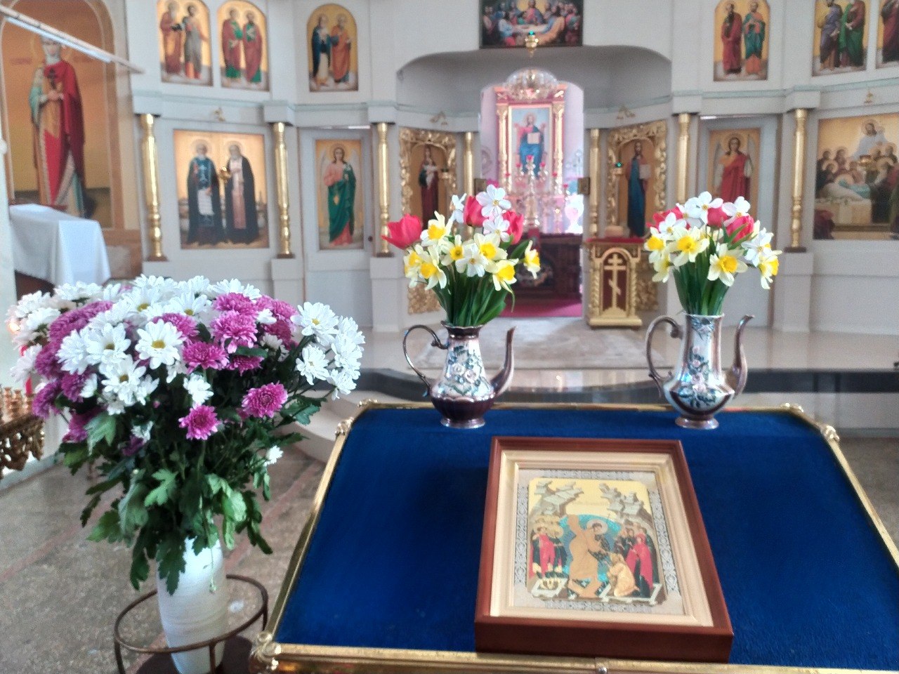 Настоятель храма и благочинный Токмакского церковного округа отец Николай поздравил прихожан с великим, радостным праздником Христова Воскресения и зачитал им Пасхальное послание Патриарха Московского и всея Руси Кирилла.