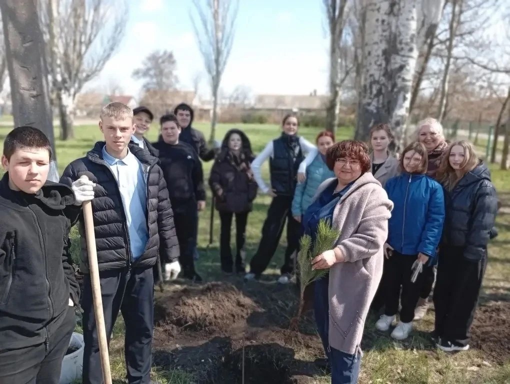 Ребята высадили молодые сосны — настоящий зелёный памятник их школьным годам.