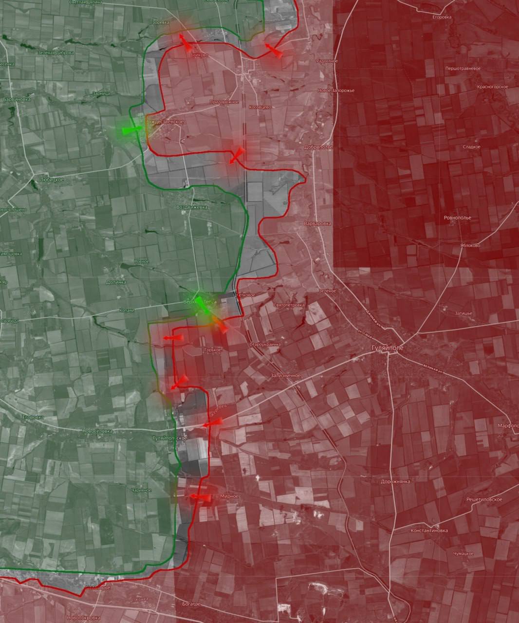 «На Днепропетровском направлении ВС РФ ведут наступательные действия в районах н.п. Воздвижевка, Верхняя Терса, Гуляйпольское, Чаривное.