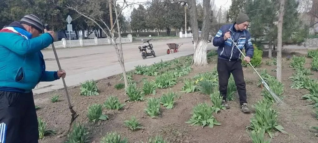 Молодежь и старшее поколение облагораживали клумбы, белили деревья и бордюры, убирали мусор.