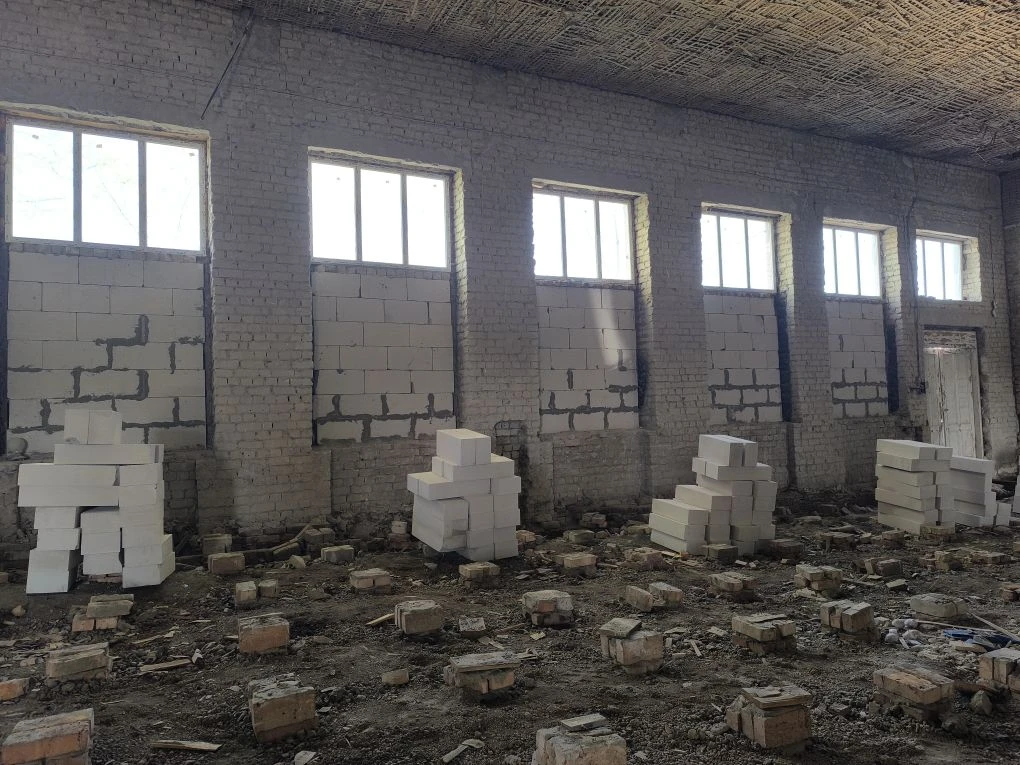 Рабочие готовят траншеи под новые коммуникации, закладывают излишне большие оконные проемы, устанавливают энергосберегающие окна.