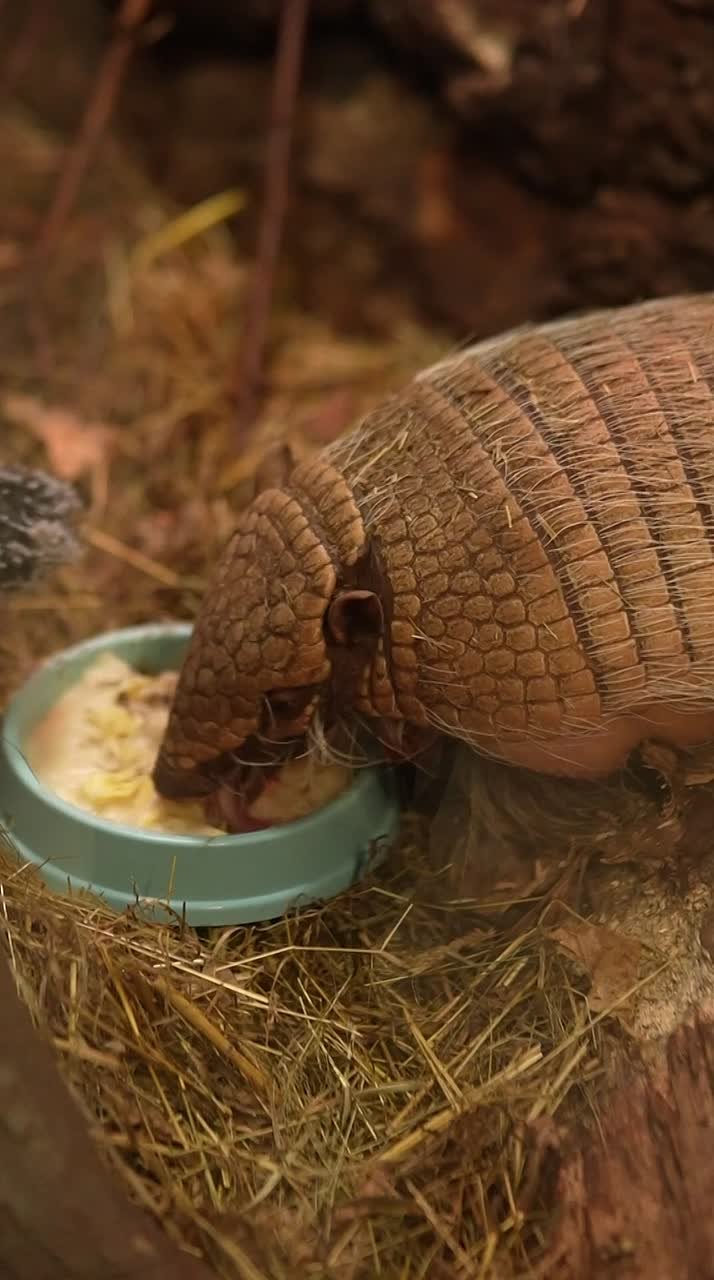 Чавкает, жует, шуршит. Шестипоясный броненосец Галя живет свою лучшую жизнь