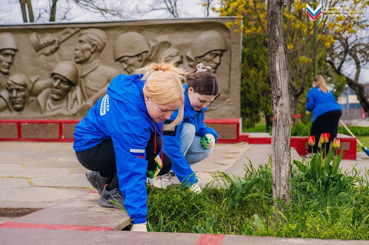 В день старта Международного субботника «Волонтёры Победы» провели уборку возле памятника воинам-работникам завода «Мелитопольский компрессор». Добровольцы подмели территорию, очистили её от травы и мусора.