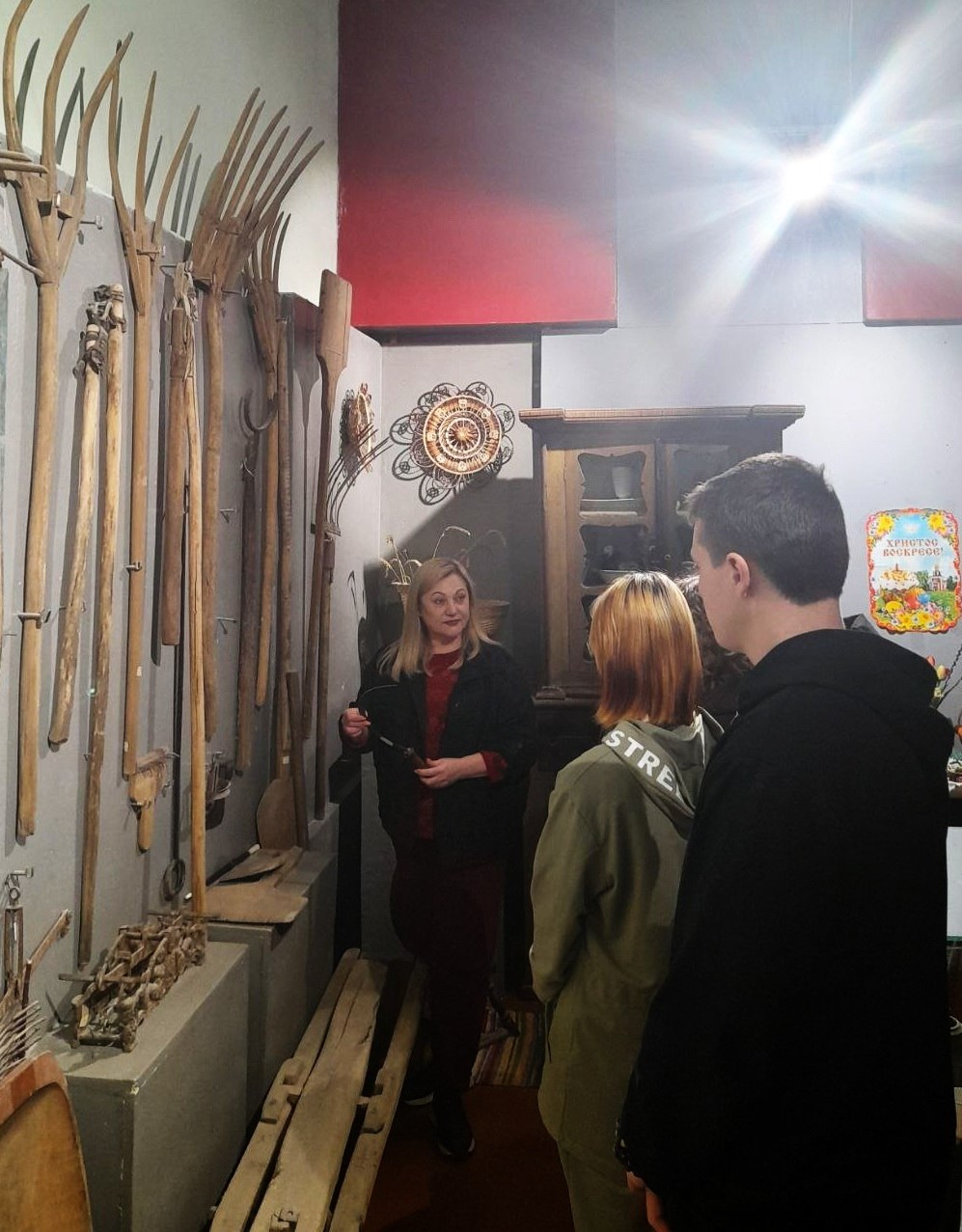 В зале этнографии, где собраны предметы быта жителей Токмакского края второй половины XIX – начала ХХ вв., научный сотрудник музея рассказала ребятам о православных традициях празднования Светлого Христова Воскресения.