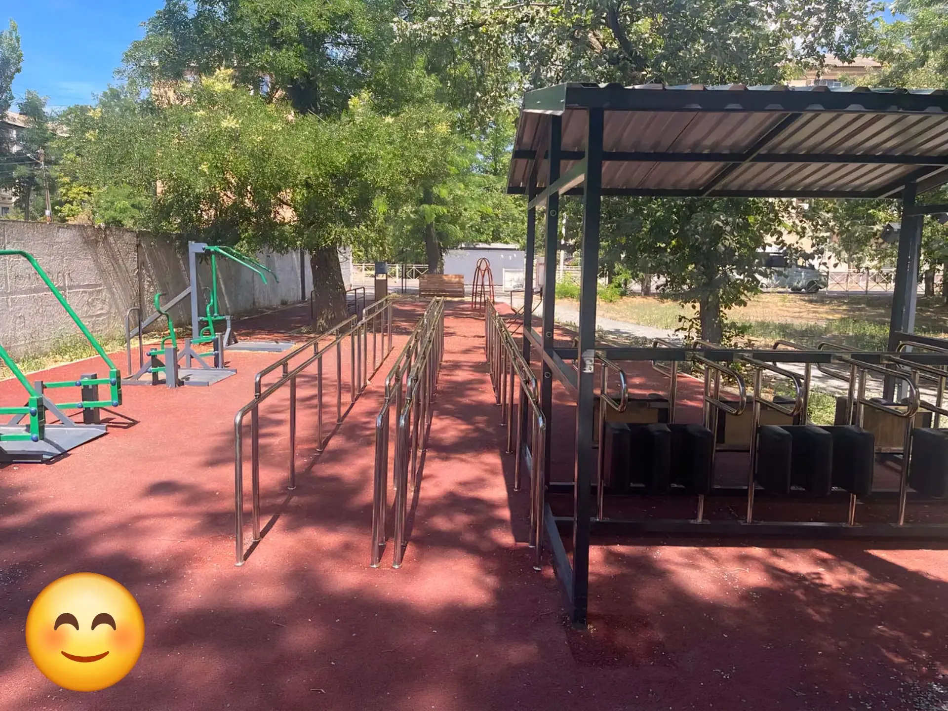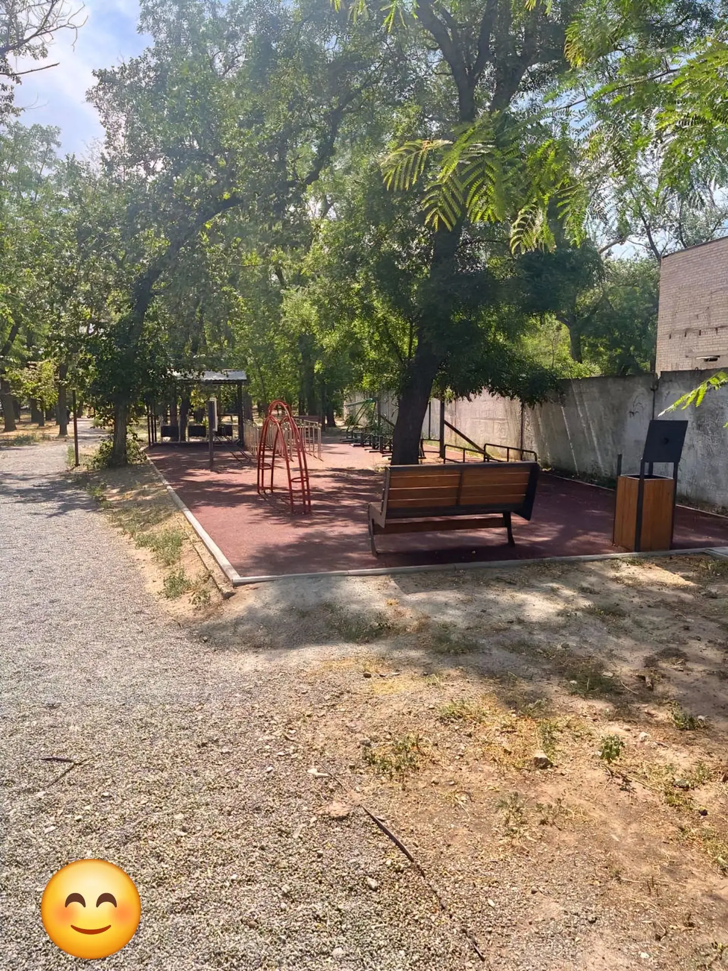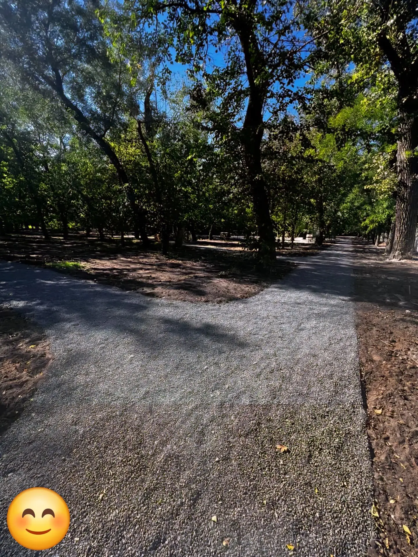 Дышащие дорожки. Вместо глухого асфальта — покрытие из отсева. Оно не нарушает «питание» вековых деревьев и работает как естественный дренаж. Это прямое воплощение умной концепции «Город-губка»: вода уходит в землю во время дождей и возвращается в засушливый мелитопольский климат, когда это нужно корням.