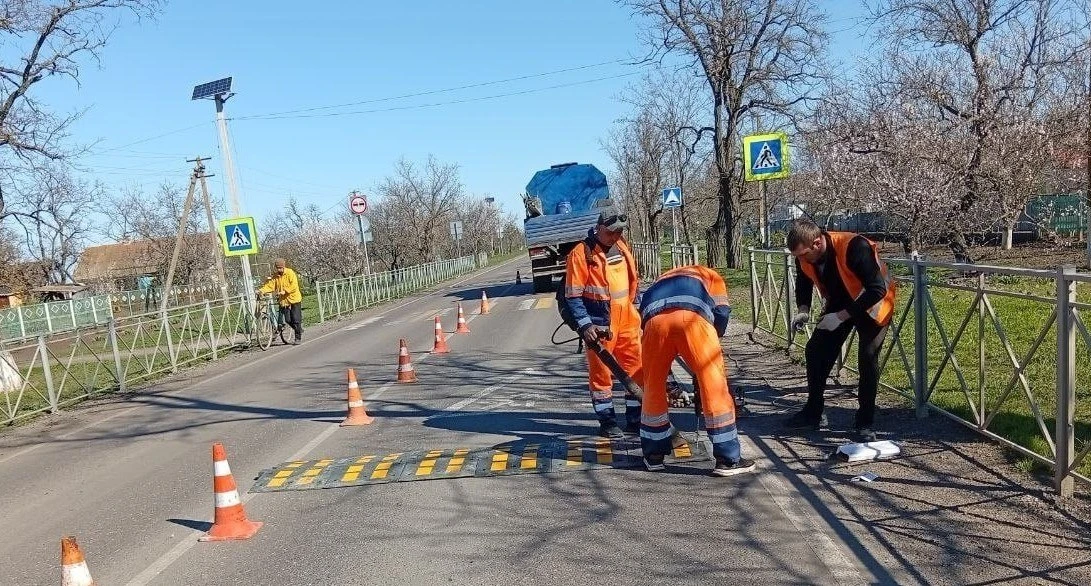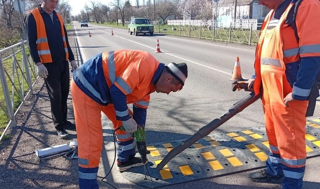 ГУП «УАЗО» продолжает монтировать «лежачих полицейских» для обеспечения безопасности дорожного движения на территории Запорожской области.