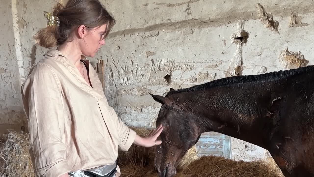 Это Иртыш. Ему всего один год. Жеребенок получил тяжелые ожоги — пламя и раскаленные обломки повредили кожу на боках и спине. Кроме того, у него осколочные ранения. Осколки прошли на вылет и не повредили жизненно важные органы. Сейчас каждые два часа идет обработка ожогов. Очень важно не допустить стягивания кожи.