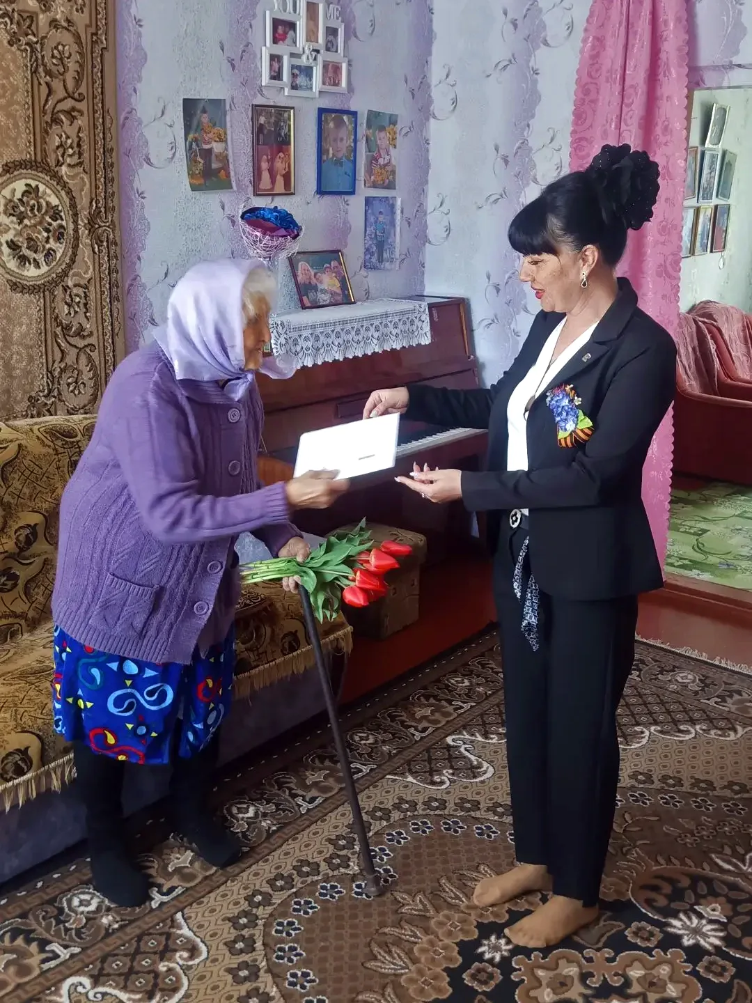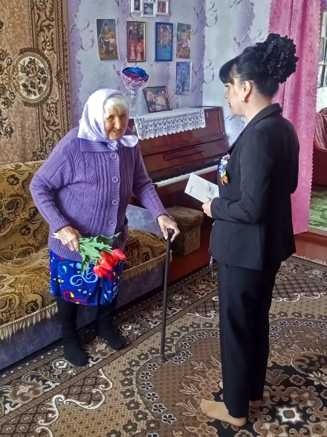 Начальник Высоковского территориального отдела Администрации Михайловского муниципального округа поздравила с 95-летием Солдатенко Зинаиду Григорьевну и передала ей письмо с поздравлениями от Президента Российской Федерации Владимира Путина