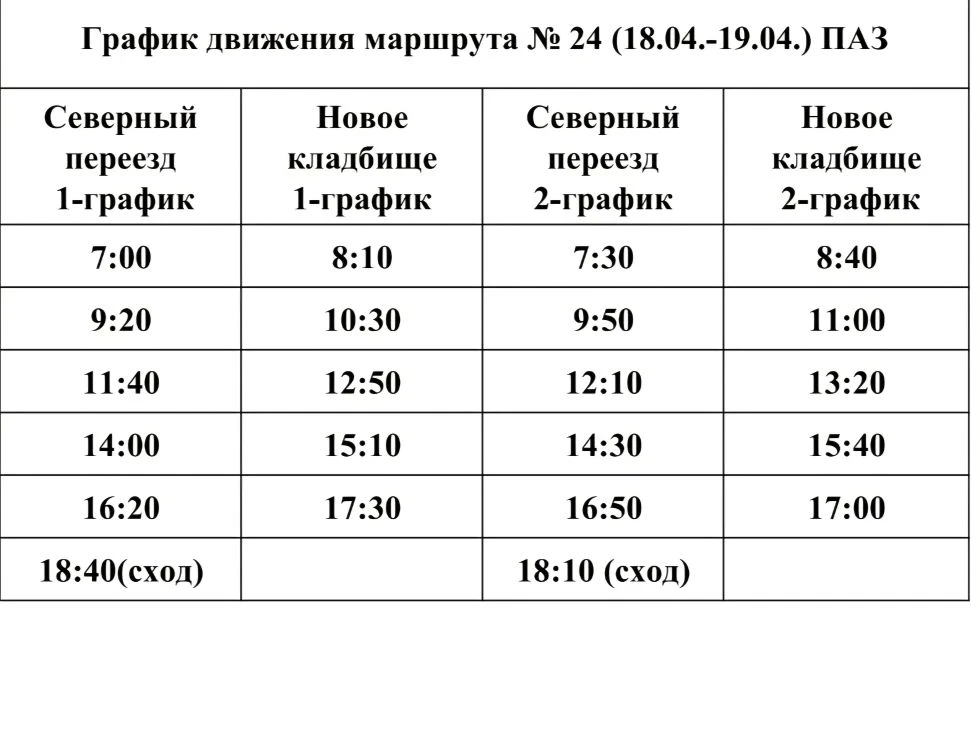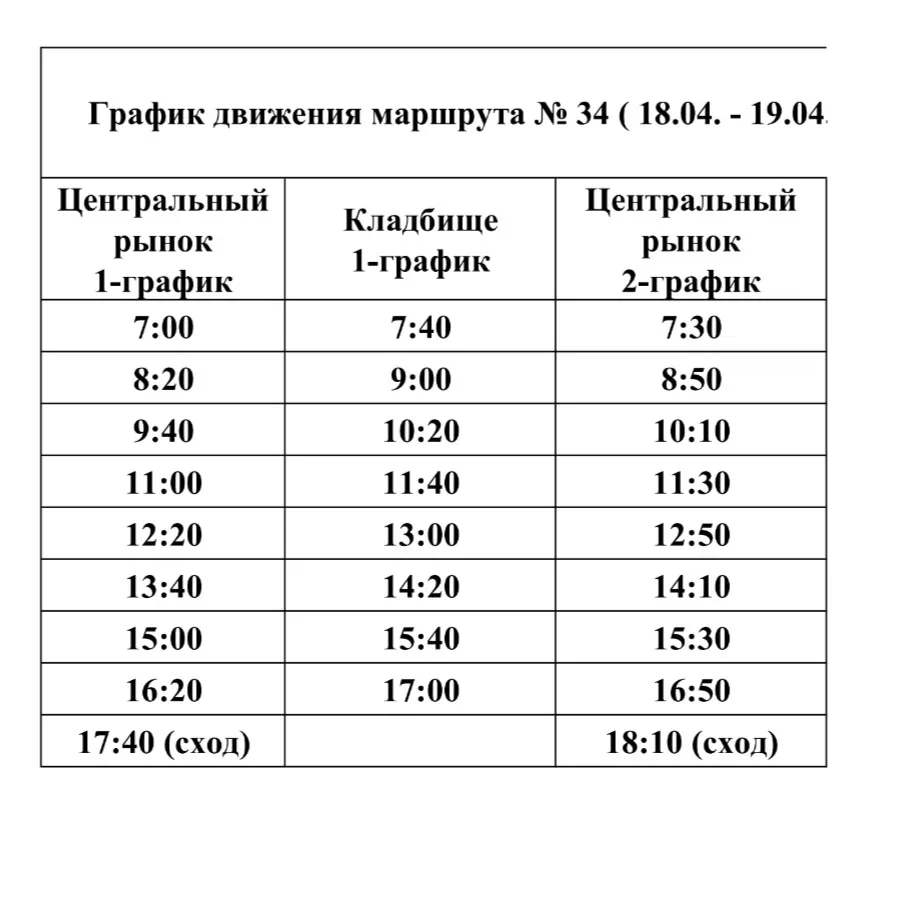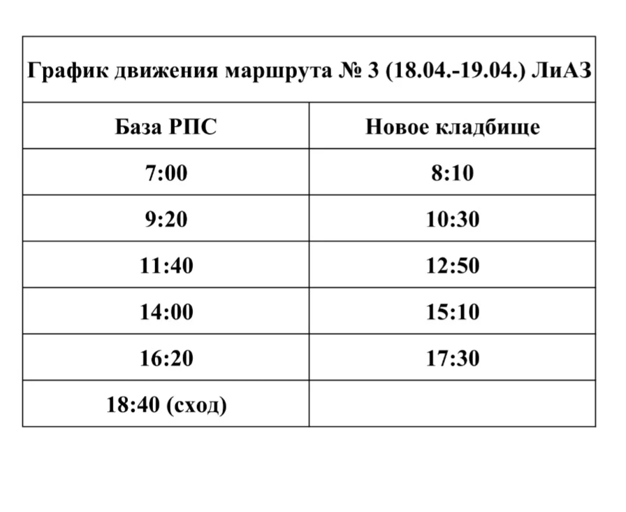 Внимание! Маршруты работают только 18 и 19 апреля 2026 года.