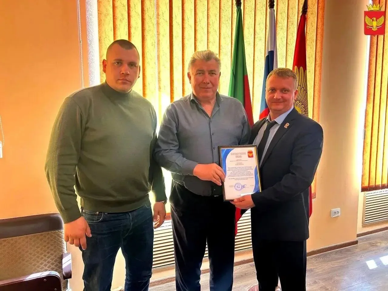 Благодарственное письмо от главы Приморского муниципального округа Владимира Прокопенко вручено директору филиала ФБУ "Росавтотранс" по Южному федеральному округу Игорю Высоцкому за содействие в организации пилотного проекта «Развитие транспортной инфраструктуры в Приморском муниципальном округе» как участника Федерального проекта «Пять морей и озеро Байкал» и за значительный вклад в развитие округа.