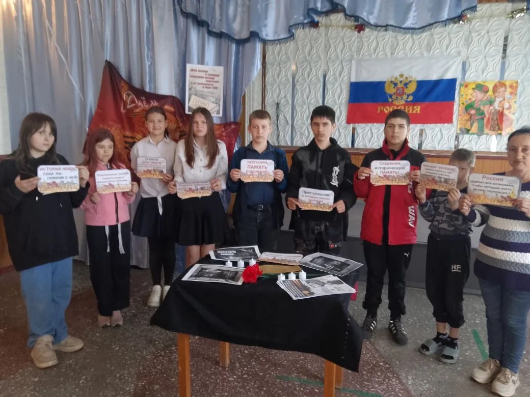 - Сотрудники филиалов Гюневского, Зеленовского, Новоалексеевского и Юрьевского сельских клубов провели с подрастающим поколением беседу о страшных испытаниях, через которые прошел советский народ, и о зверствах фашистских захватчиков. Новоалексеевцы просмотрели видеоролик, который помог понять масштаб и глубину трагедии. Для юрьевцев организовали тематическую книжную выкладку, а юные гюневцы посмотрели щемящий документальный фильм.