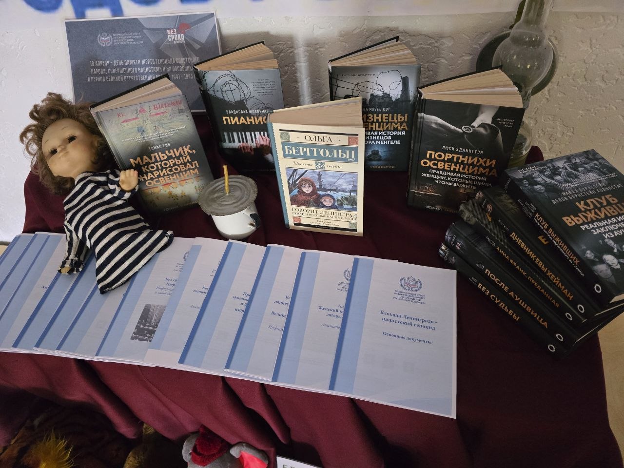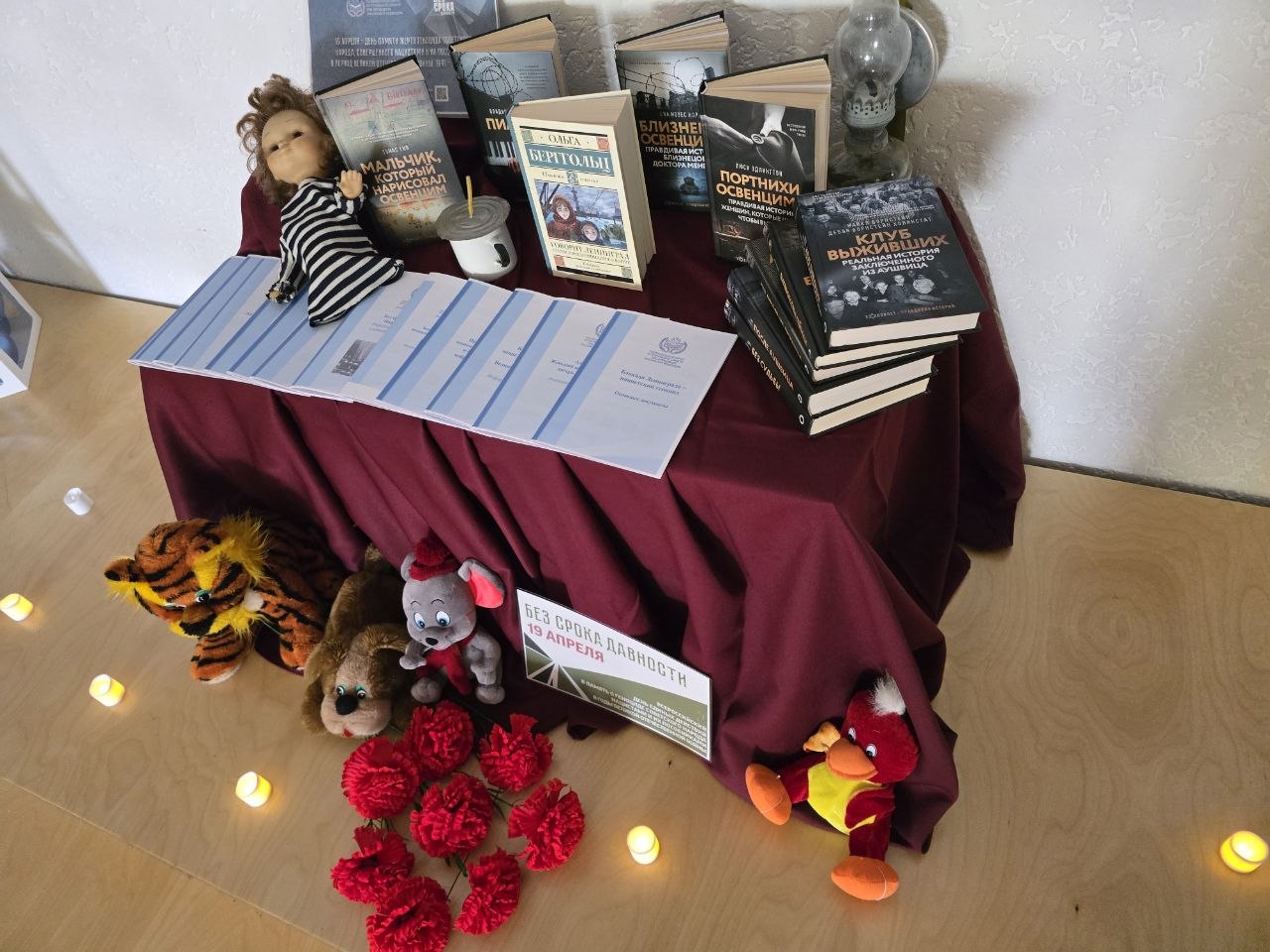 К мероприятию была подготовлена тематическая выставка-инсталляция «Без срока давности». Представленные на ней материалы и документы наглядно демонстрируют масштаб трагедии и призывают нас помнить о тех, кто не дожил до Победы, чтобы подобные зверства никогда не повторились на нашей земле.