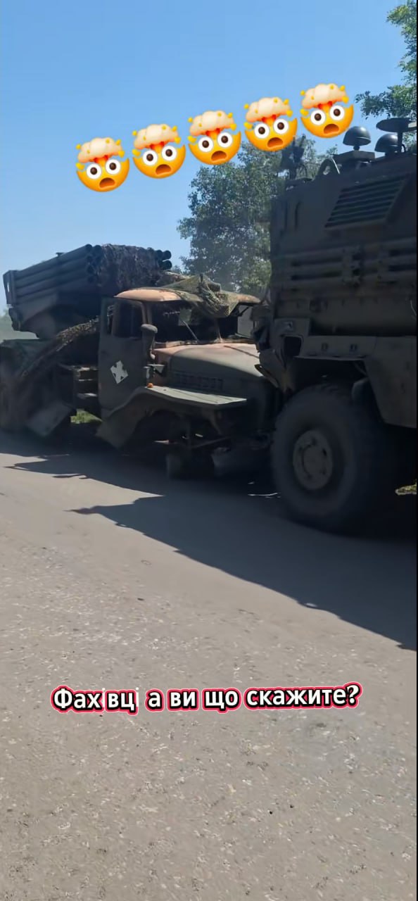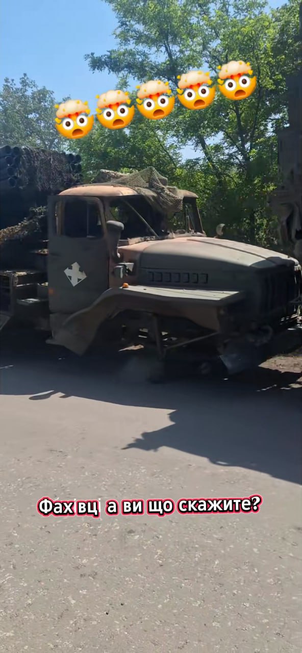 Поврежденная РСЗО БМ-21 Град ВСУ где-то на фронте.