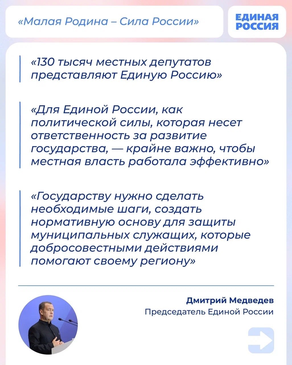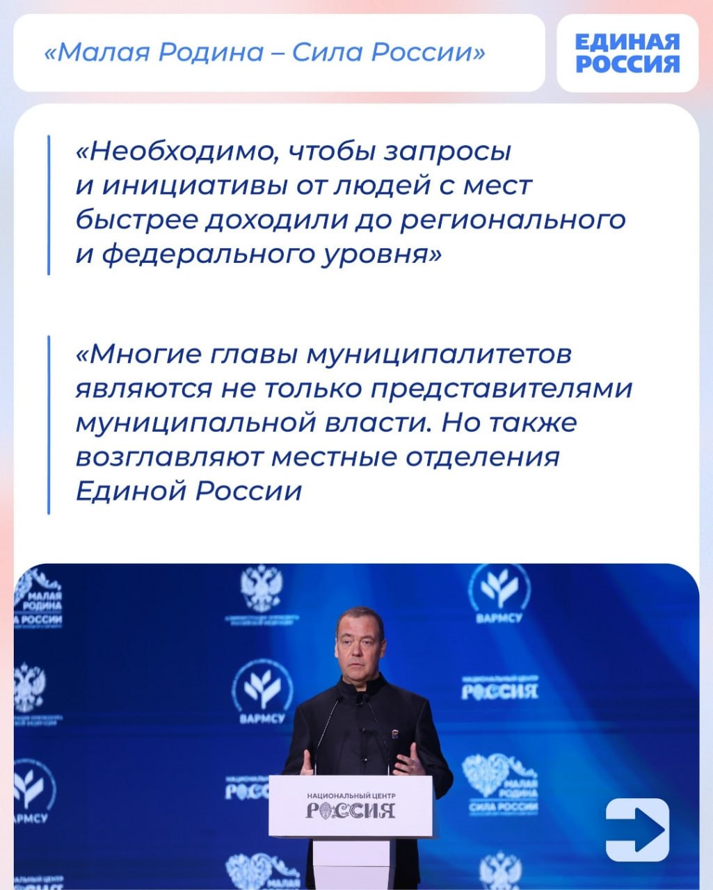 Председатель Единой России, зампредседателя Совбеза РФ Дмитрий Медведев выступил на III всероссийском муниципальном форуме «Малая Родина — сила России»