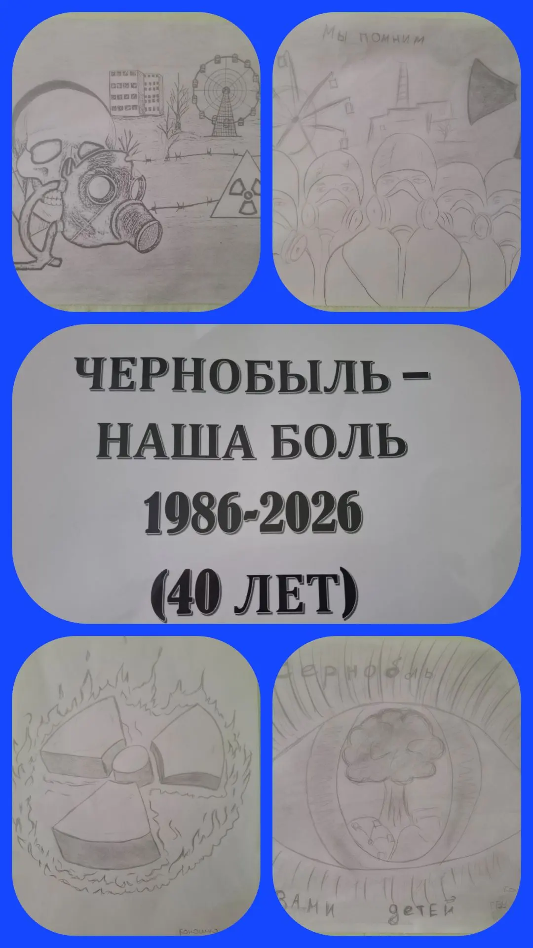 ,,Мелитопольское районное управление социальной защиты" Министерства труда и социальной политики Запорожской области прошла трогательная выставка детских рисунков «Чернобыль — наша боль». Юные художники через свои работы попытались осмыслить масштабы катастрофы, отдать дань уважения героям-ликвидаторам и напомнить нам о важности бережного отношения к окружающему миру.