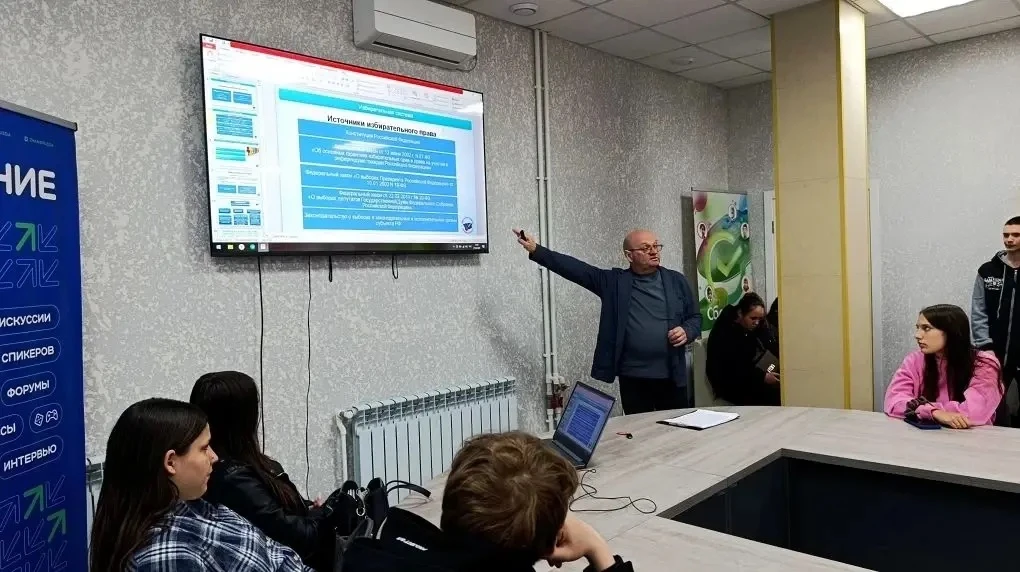 Член Избирательной комиссии Запорожской области, лектор Российского общества «Знание» Константин Горбачев объяснил студентам, как устроена избирательная система в России и в регионе, какие бывают выборы (местные, региональные, федеральные), и о выборах депутатов Госдумы в 2026 году.
