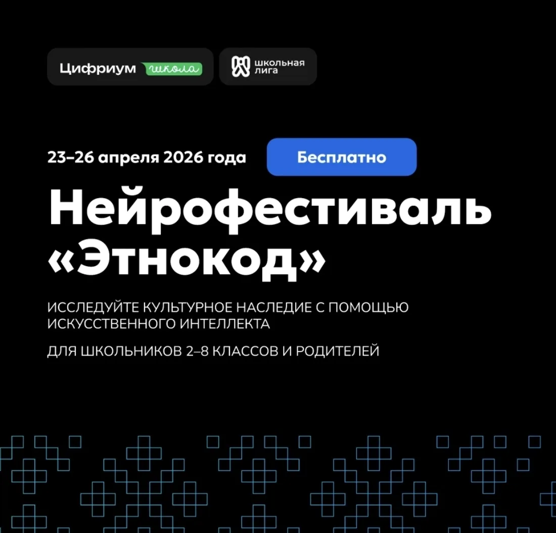 Нейрофестиваль «Этнокод» — это бесплатный онлайн-фестиваль, где дети и родители исследуют культурное наследие народов России с помощью искусственного интеллекта. Участников ждут мастер-классы по работе с нейросетями, творческие квесты и конкурсы с призами.