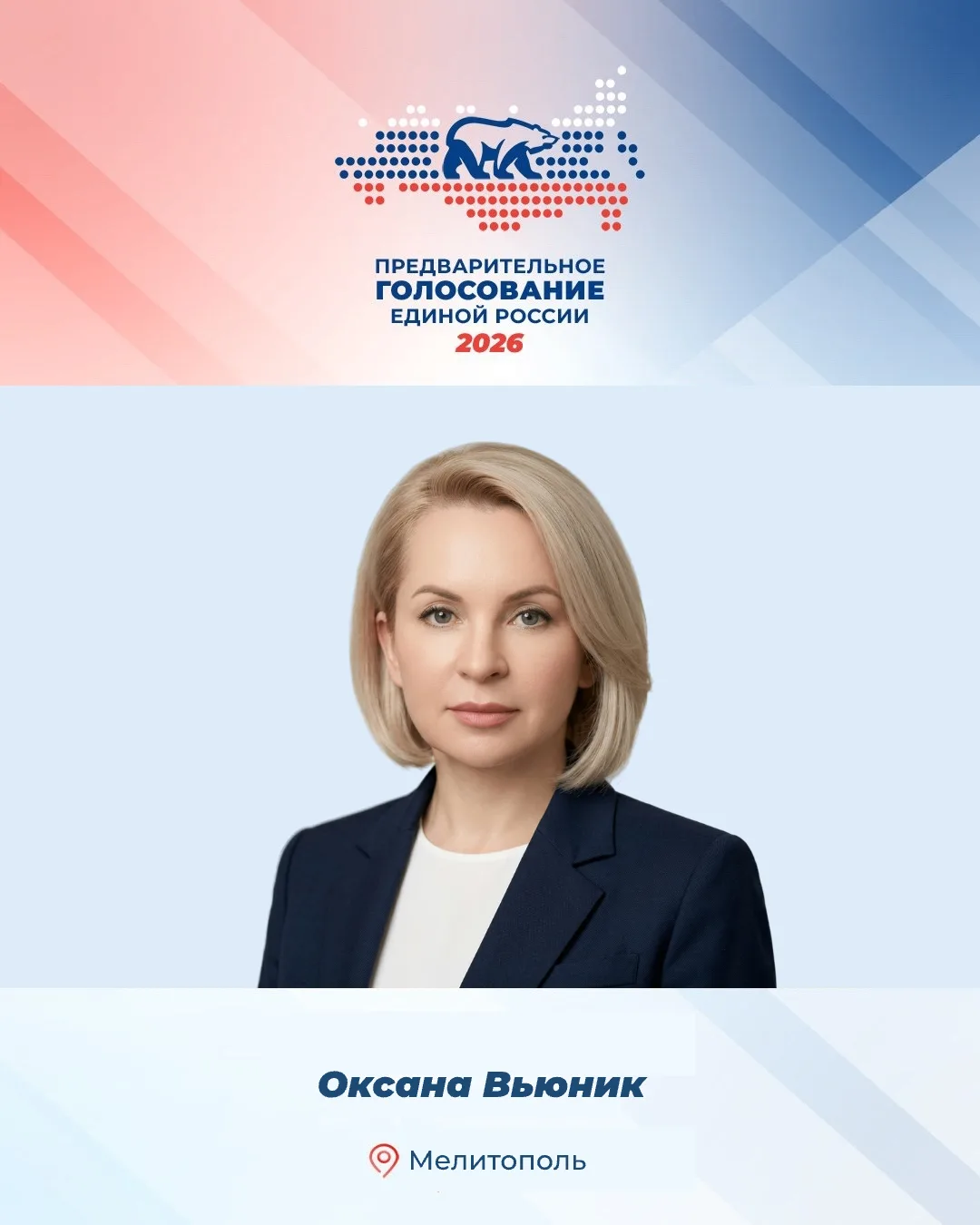 Первый заместитель губернатора Запорожской области Оксана Вьюник стала участником предварительного голосования Единой России