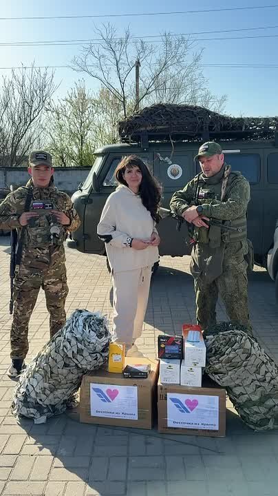 Привезли мобильные телефоны и зарядки для FPV от Добро Мира, а также маскировочные сети и вкусные сублимированные супы, борщи и каши от Весточки из Крыма.