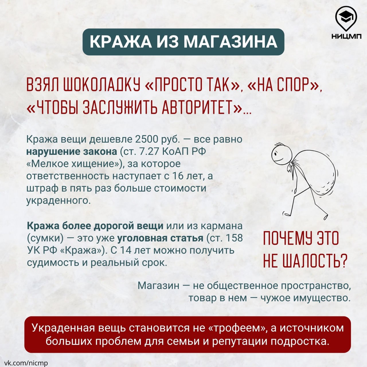 Кража товаров в магазине, оскорбления сверстников или ложные сообщения о минировании могут показаться кому-то обыкновенной шуткой. Но такие поступки квалифицируются в соответствии с нормами Административного или Уголовного законодательства Российской Федерации и влекут за собой ответственность, даже для подростков.