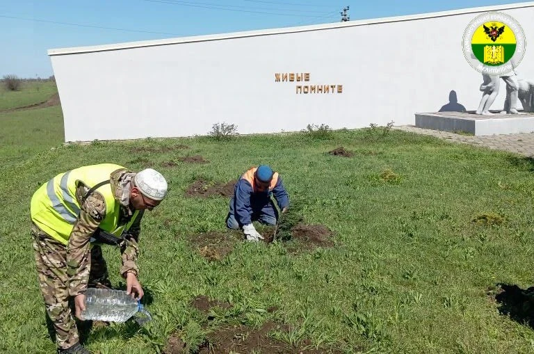 Сотрудники МКУ «Благоустройство» совместно с администрацией Константиновского сельского поселения высадили саженцы казацкого можвельника у мемориала «Живые, помните!», а также провели уходовые работы за зелеными насаждениями.