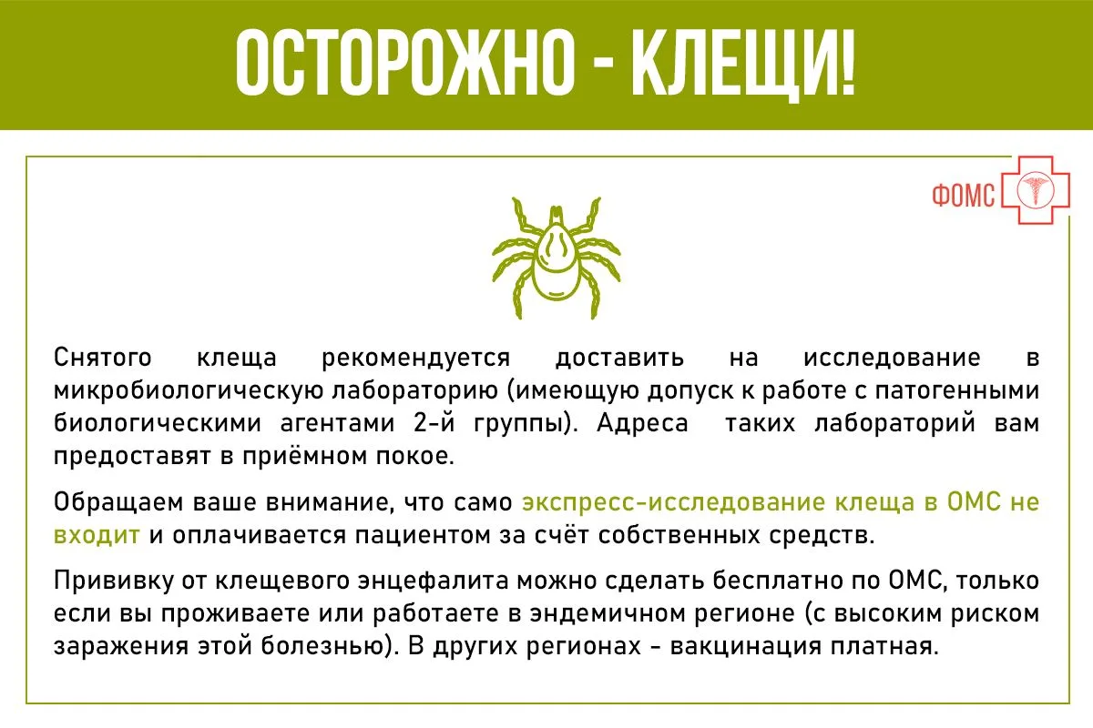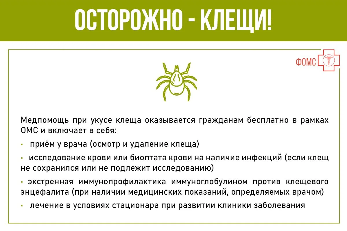 Весна - период выхода насекомых из зимней спячки. Чем опасны проснувшиеся иксодовые клещи, какая медпомощь доступна по ОМС и что делать в случае, если вас укусил клещ? - смотрите #инфокарточкиФОМС