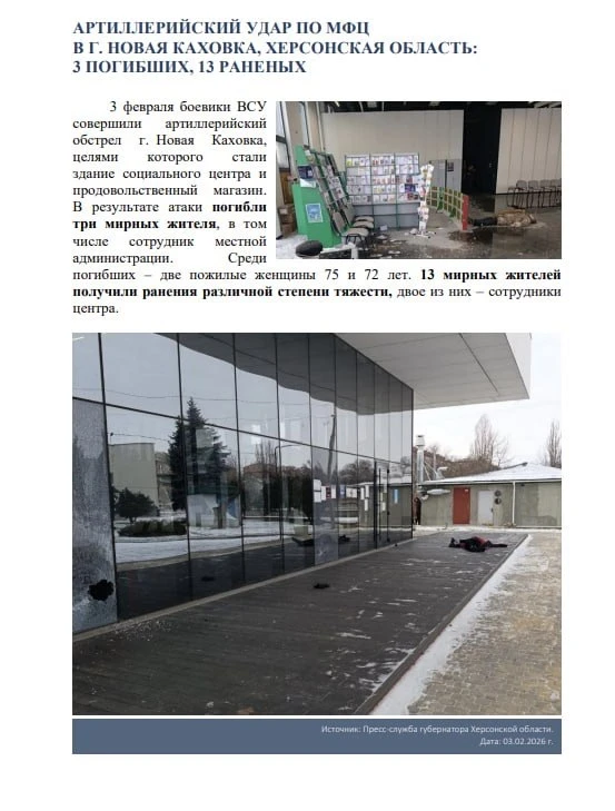 Публикуем квартальный доклад по преступлениям киевского режима в январе-марте 2026 года, подготовленный Послом по особым поручениям МИД России Р.В.Мирошником.