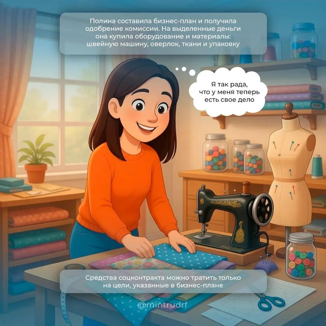 В наших карточках – история Полины, которая открыла швейную мастерскую благодаря соцконтракту.