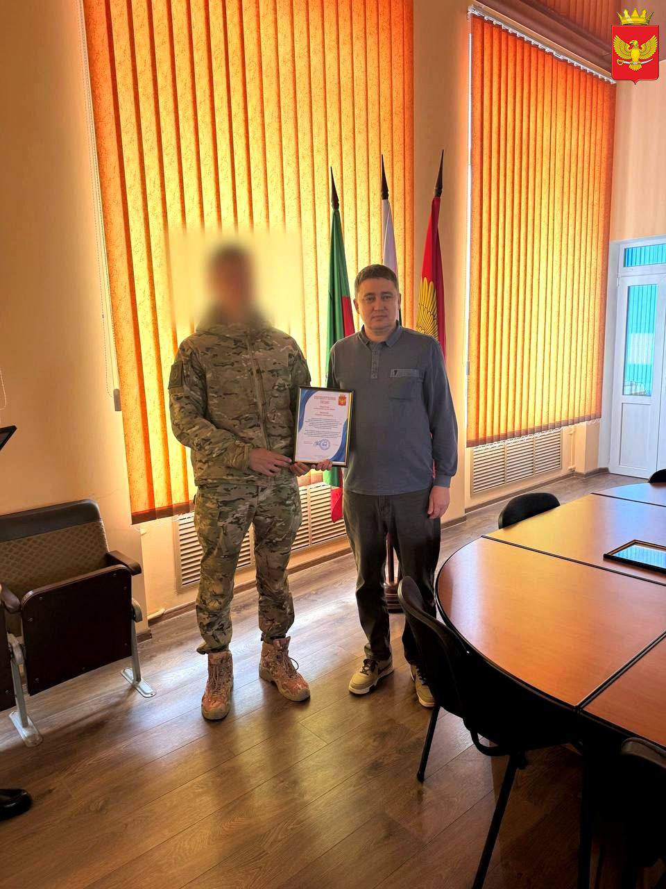 В пятницу, 24 апреля, глава Приморского муниципального округа Владимир Прокопенко в торжественной обстановке вручил военнослужащим, защищающим наш край, благодарности за эффективную оборону объектов гражданской инфраструктуры и обеспечение безопасности местного населения. Глава муниципалитета поблагодарил бойцов за надёжное плечо и верность долгу.