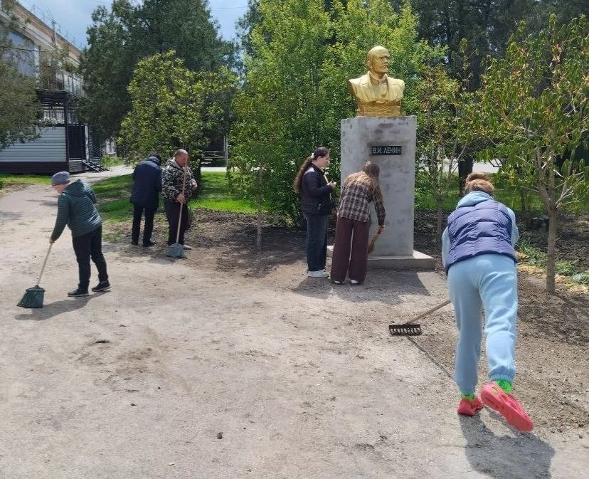 Сотрудники культуры навели порядок на прилегающей к клубу территории. Выгребли старые листья, собрали мусор, пропололи клумбы, убрались около памятника Ленину.