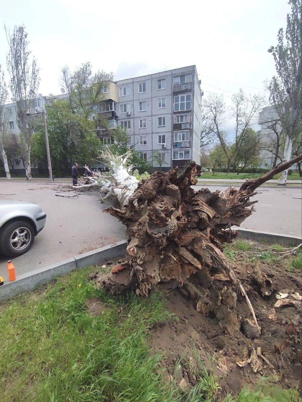 Вчера по городу пронеслась настоящая буря — ветер повалил дерево на улице Комсомольской