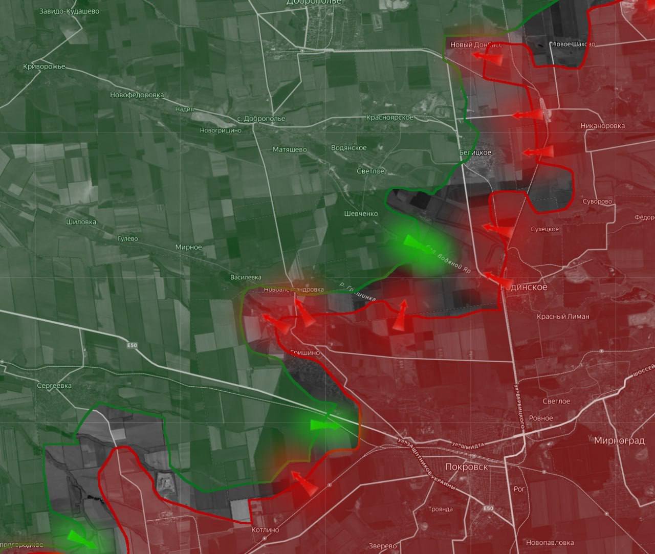 ВС РФ атакуют в направлении Шевченко и Светлого со стороны Гришино, Родинского и Белицкого. Российская сторона заявляет о захвате Белицкого и посадок, расположенных западнее.