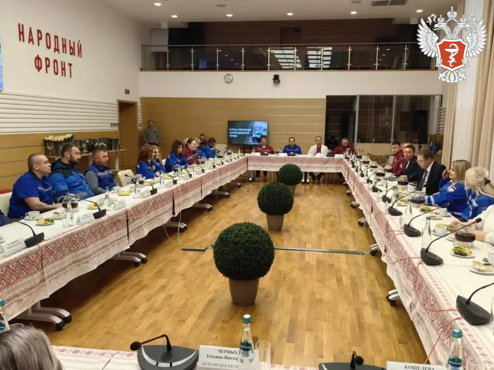 Министр здравоохранения РФ Михаил Мурашко принял участие во встрече Народного фронта с работниками скорой медицинской помощи приграничных и новых регионов в преддверии Дня сотрудника скорой медицинской помощи.