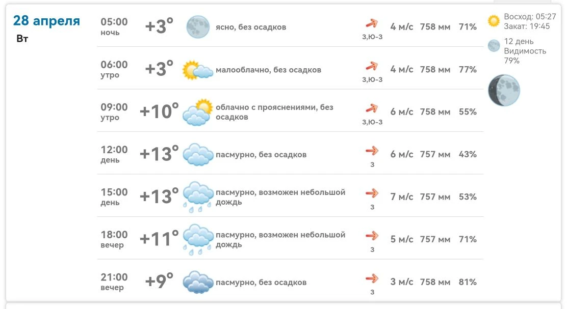 Доброе утро!Вторник, 28 апреля 2026 г.Начинаем день с весенней свежести и новых возможностей.«Апрельское утро — это когда природа уже проснулась, а лето ещё в пути»Прогноз погоды на сегодня:Утро: +4° (ощущается как +1°)День: +16°...