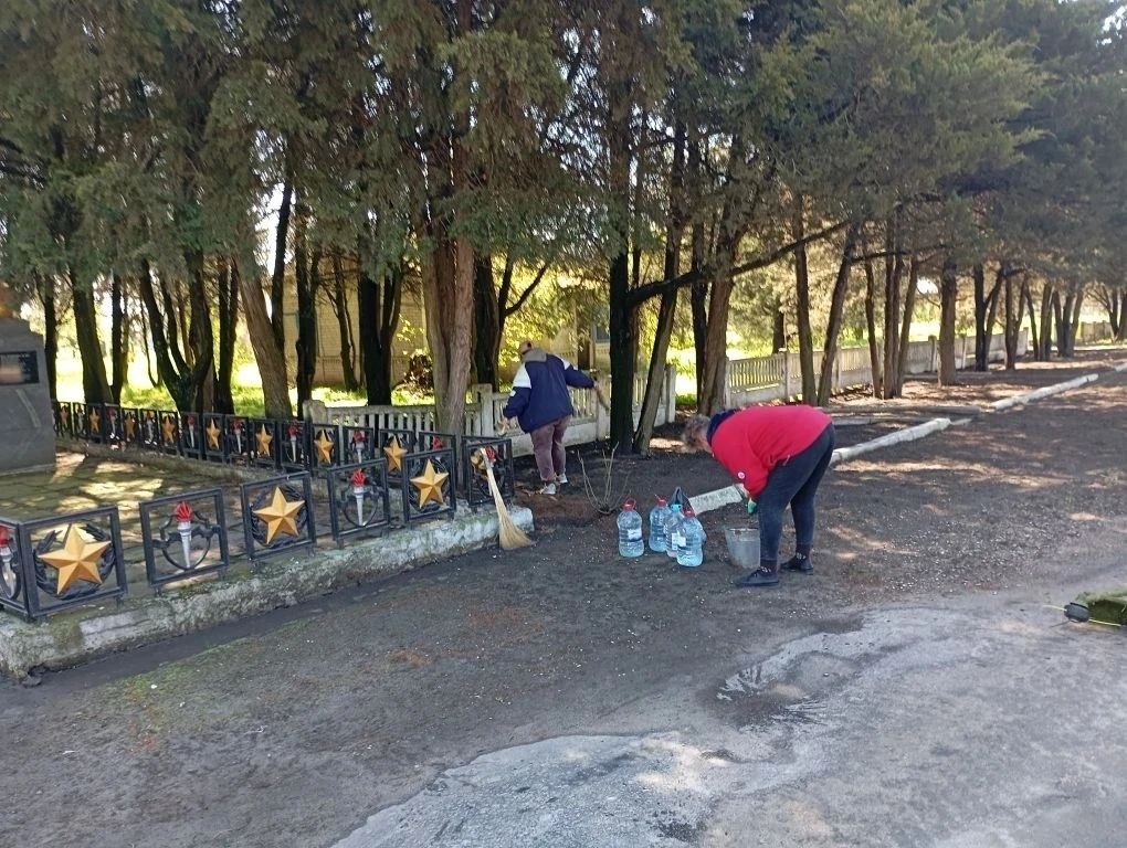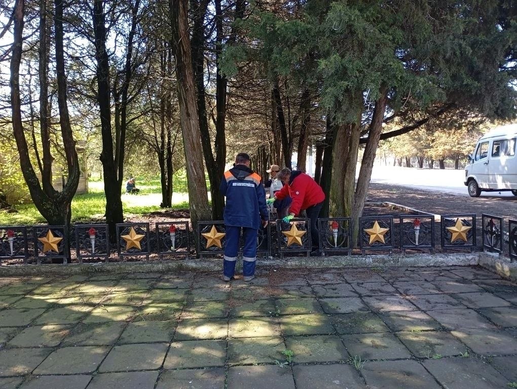 Сотрудники МКУ "Благоустройство" Кирилловского участка очистили территорию поселка от мусора и веток, покосили траву, навели порядок у обелиска Славы, в центре побелили бордюры и ограждения.