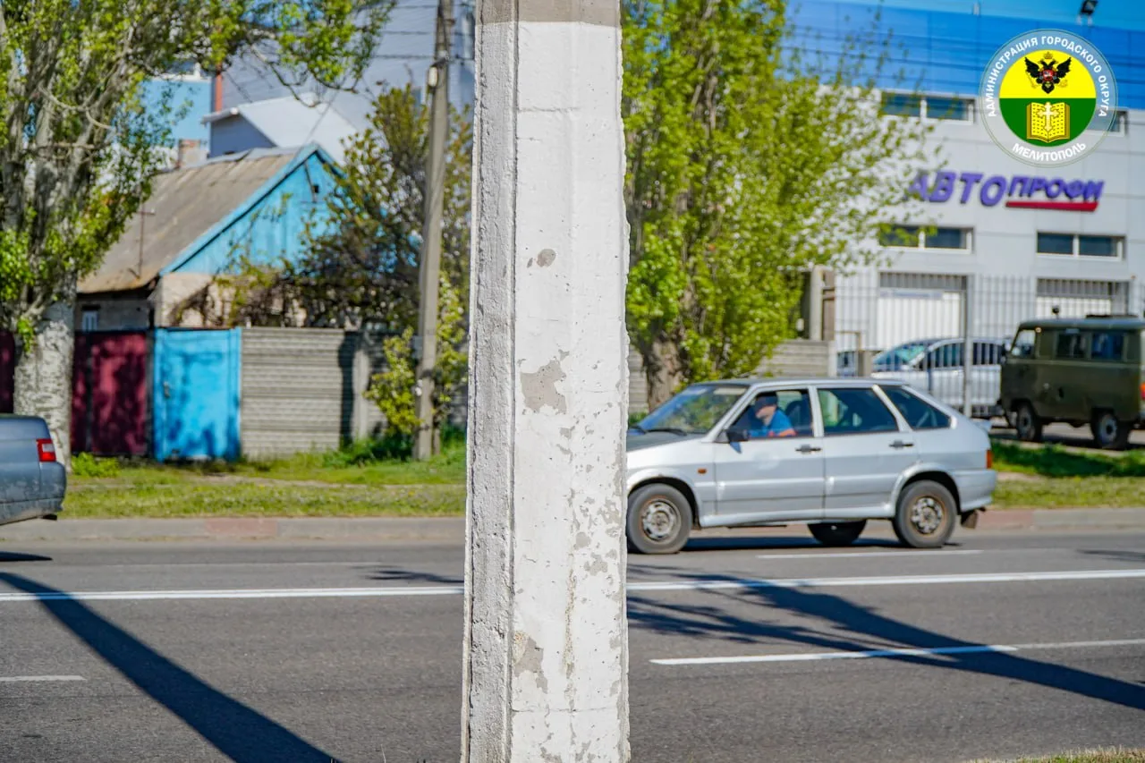 Сотрудники МКУ «Благоустройство» провели плановые работы по покраске столбов вдоль улицы Ломоносова.