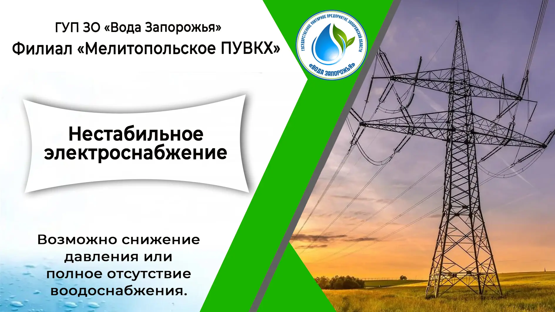 Филиал «Мелитопольское ПУВКХ» ГУП ЗО «Вода Запорожья» информирует о временном графике подачи воды в периоды отключений электроэнергии.