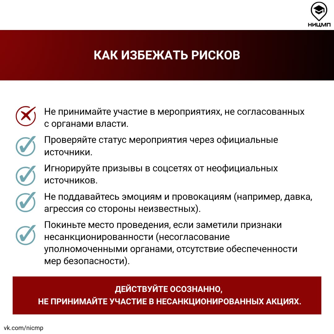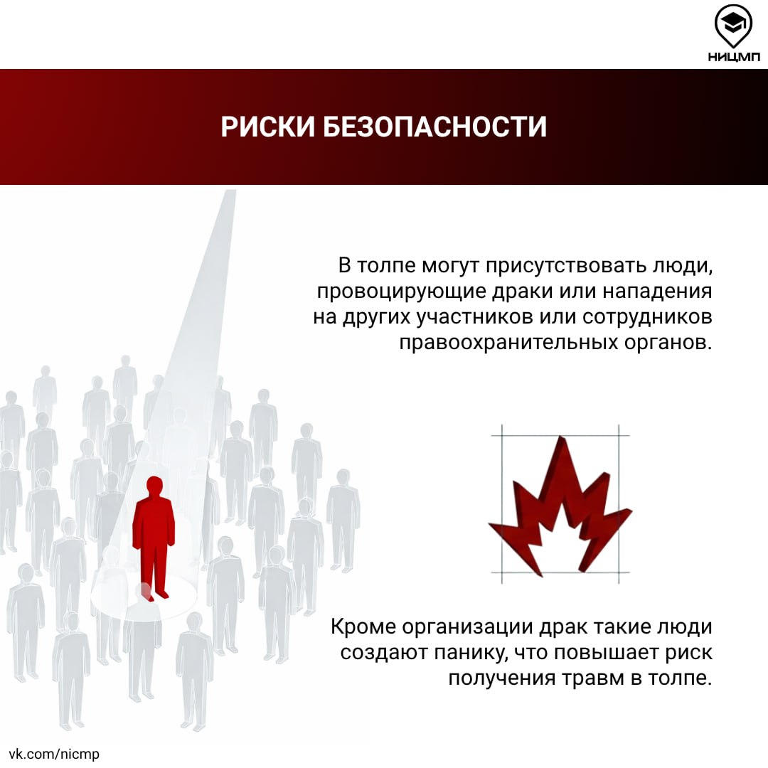 Как отличить законное мероприятие от несанкционированного и какие именно риски предусмотрены законом № 54-ФЗ — в карточках НИЦ Мониторинга и профилактики.